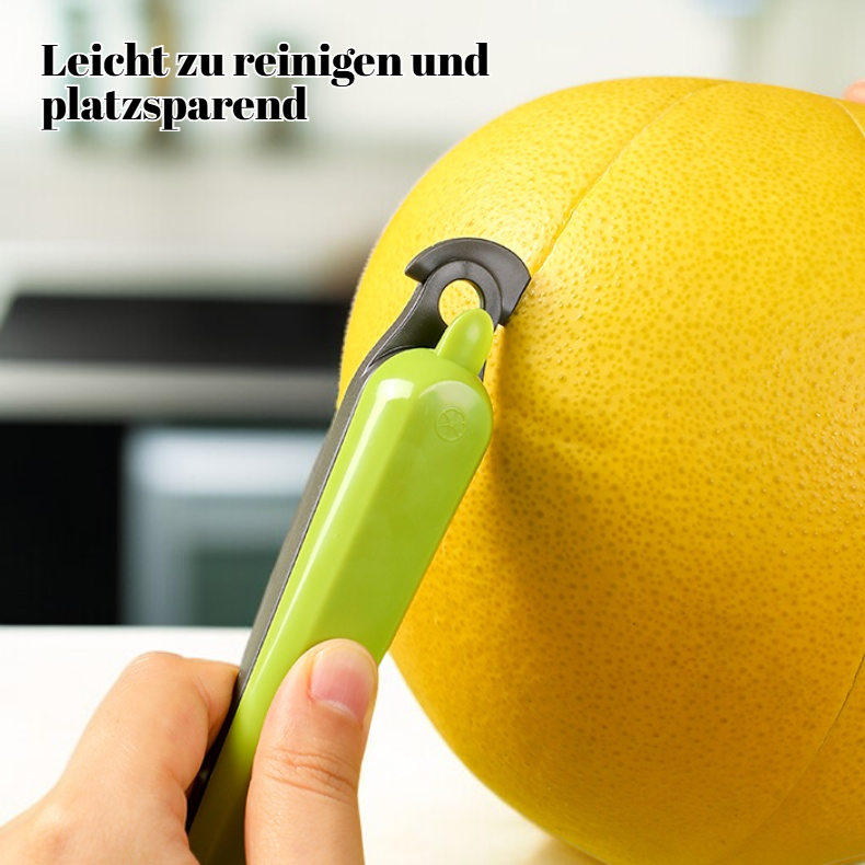 ● Aus hochwertigem Edelstahl gefertigt, garantiert dieser Fruchtschäler Langlebigkeit und Rostfreiheit – ideal für den täglichen Gebrauch beim Schälen von Pomelos und Orangen.